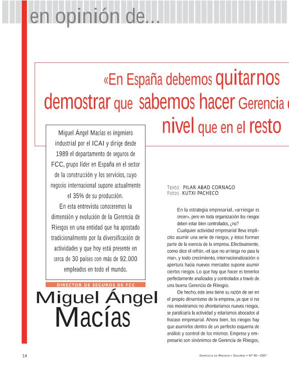 "En España debemos quitarnos complejos y demostrar que sabemos hacer gerenica de riesgos al mismo...