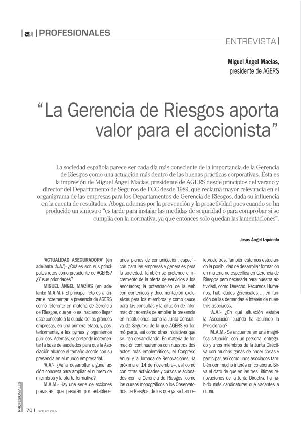 - En: Gerencia de riesgos y seguros. - Madrid : FUNDACION MAPFRE, Instituto de Ciencias del Seguro. - nº 98, 2º cuatrimestre 2007 ; p. 14-20