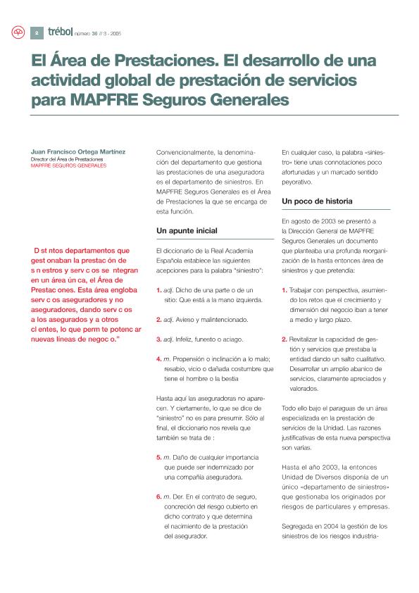 - En: Trébol. - Madrid : MAPFRE RE, 1996-2015 = ISSN 1137-246X. - 01/07/2005 Número 36 Diciembre 2005, p. 2-7