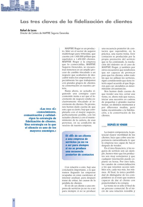 - En: Trébol. - Madrid : MAPFRE RE, 1996-2015 = ISSN 1137-246X. - 01/04/2003 Número 27 Abril 2003, p. 2-4