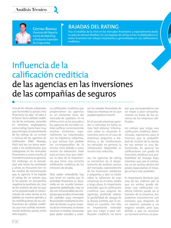 En: Aseguradores. - Madrid : Consejo General de los Colegios de Mediadores de Seguros, 1968- = ISSN 004-430-X. - 01/06/2010 Número 415 - junio 2010 , p. 28-30