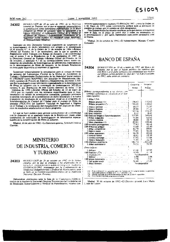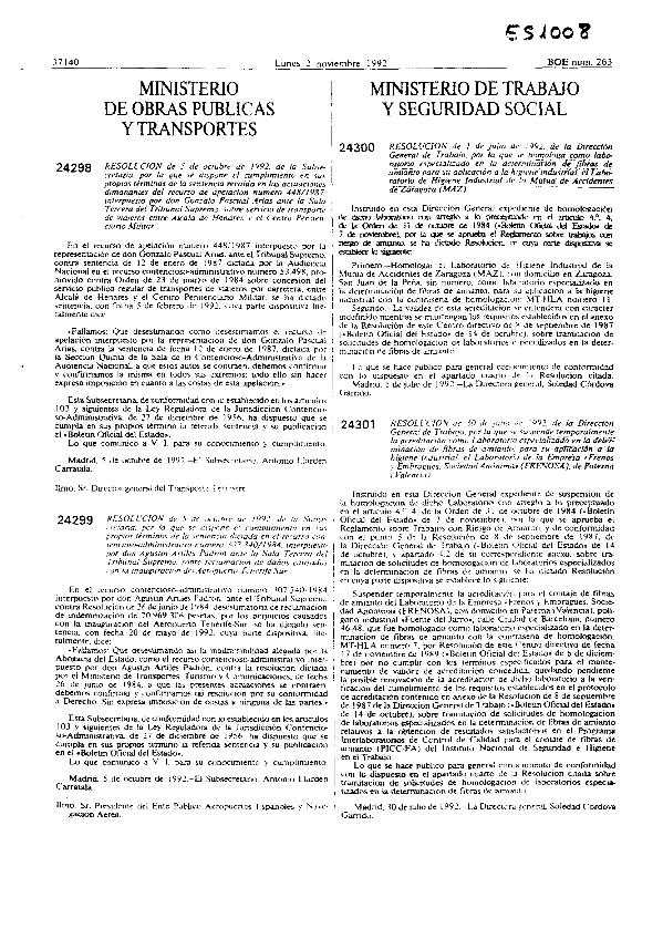 - En: . - B.O.E. núm. 263, de 2 noviembre 1992
