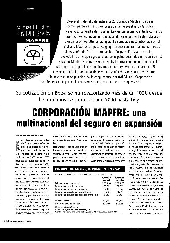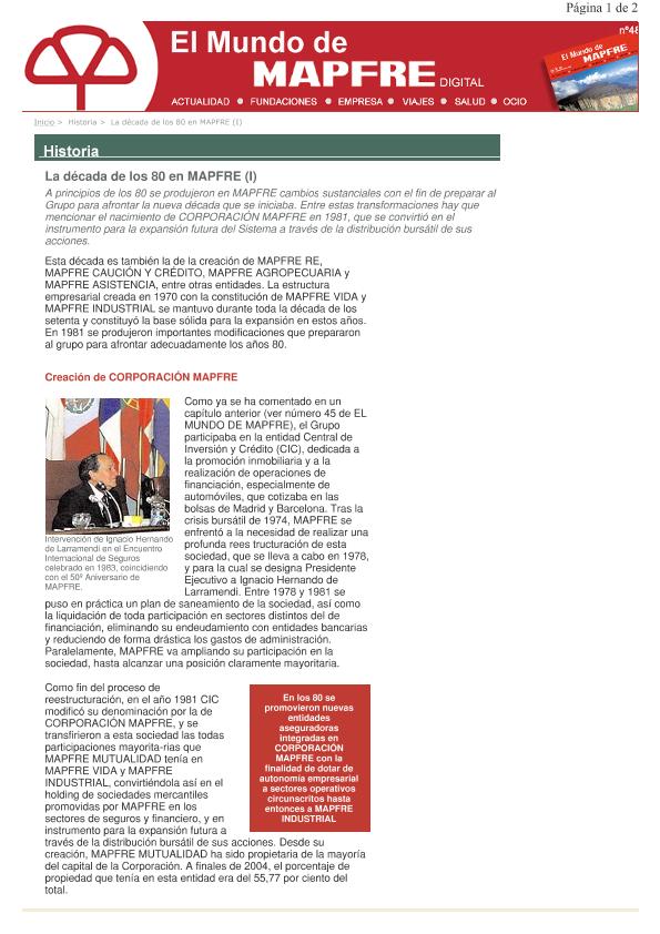- En: El Mundo de MAPFRE. - Madrid : Dirección de Comunicación del Sistema MAPFRE. - Nº 48, 2º trimestre 2005 ; p. 28-29