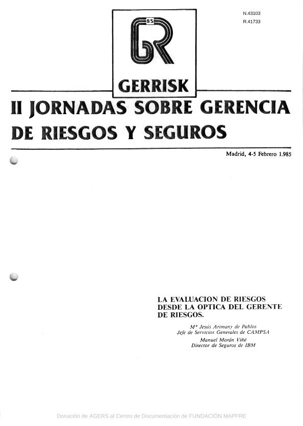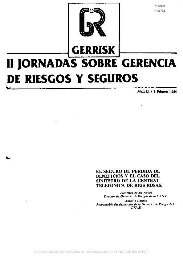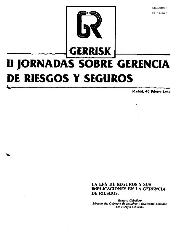 II Jornadas sobre Gerencia de Riesgos y Seguros, GERRISK : Madrid, 4 y 5 de febrero de 1985