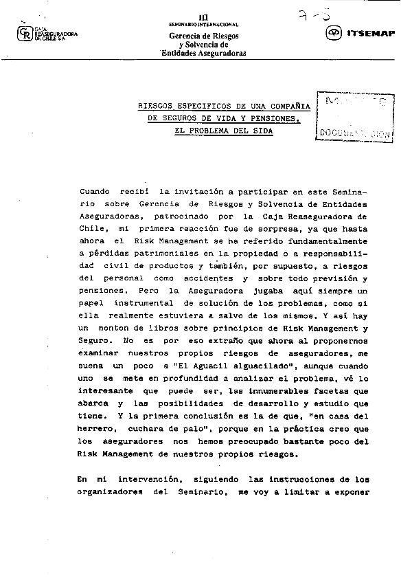 Riesgos específicos de una compañía de seguros de vida y pensiones : el problema del SIDA