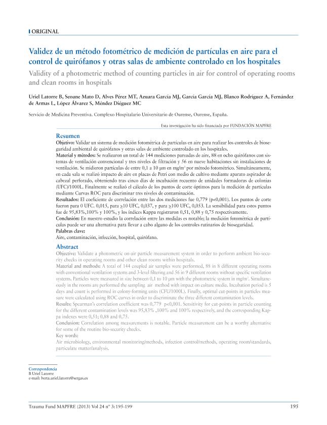 Validez de un método fotométrico de medición de partículas en aire para el control de quirófanos...