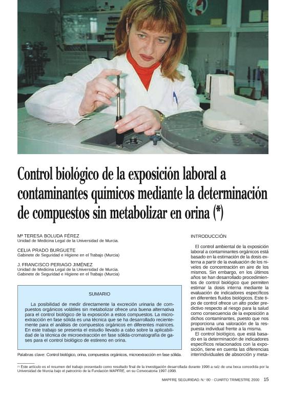 Control biológico de la exposición laboral a contaminantes químicos mediante la determinación de...