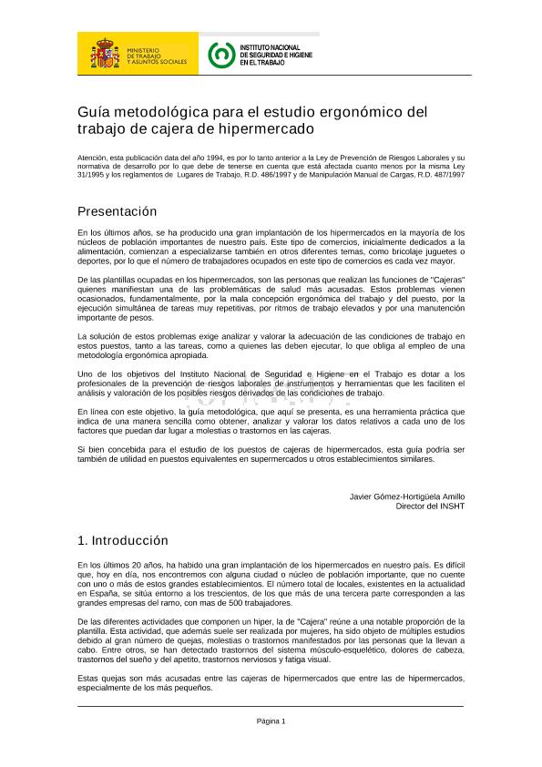 Guía metodológica para el estudio ergonómico del trabajo de cajera de hipermercado