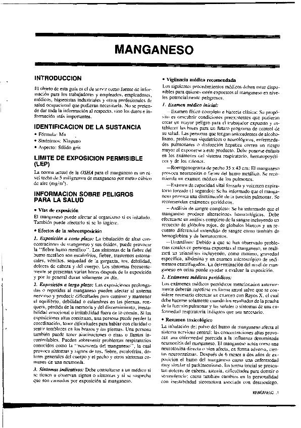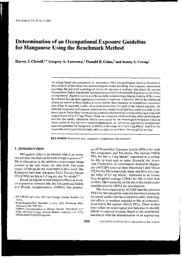 Assessment of the permissible exposure level to manganese in workers exposed to manganese dioxide...