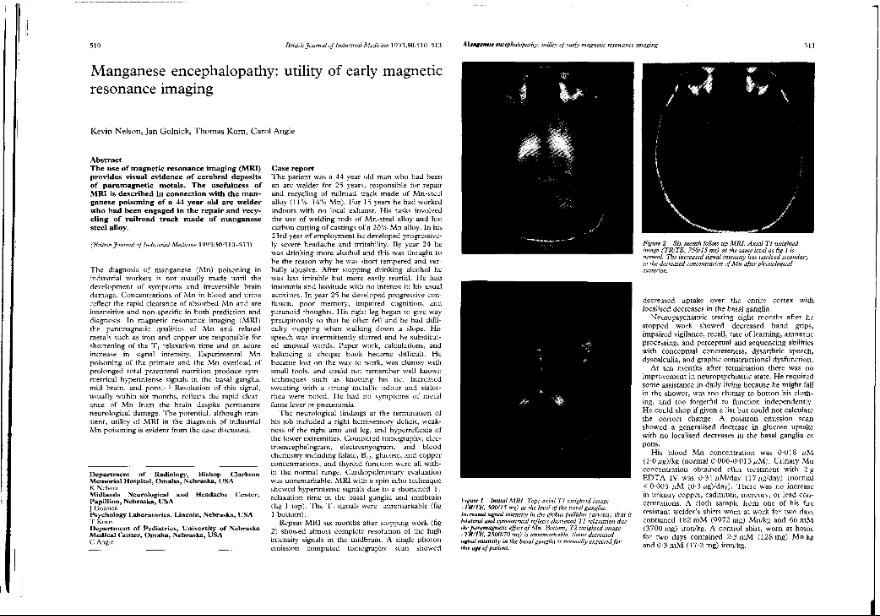 Manganese encephalopathy : utility of early magnetic resonance imaging