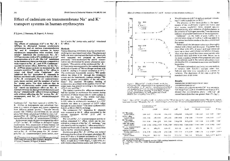 Effect of cadmium on transmembrane Na+ and K+ transport system in human erytrocites