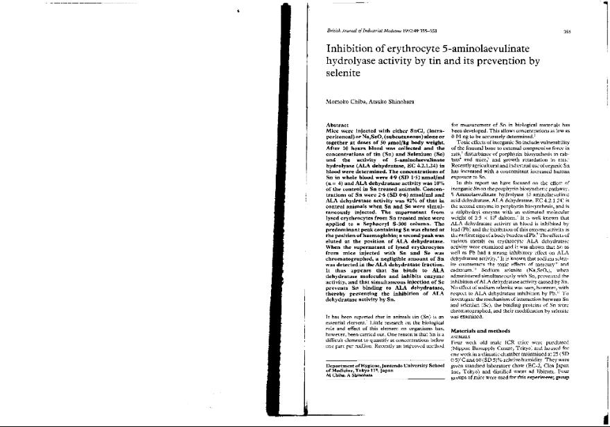 Inhibition of erythrocyte 5-aminolaevulinate hydrolyase activity by tin and its prevention by...