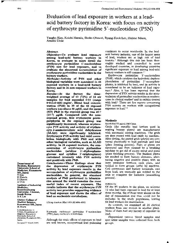 Evaluation of lead exposure in workers at a lead-acid battery factory in Korea : with focus on...