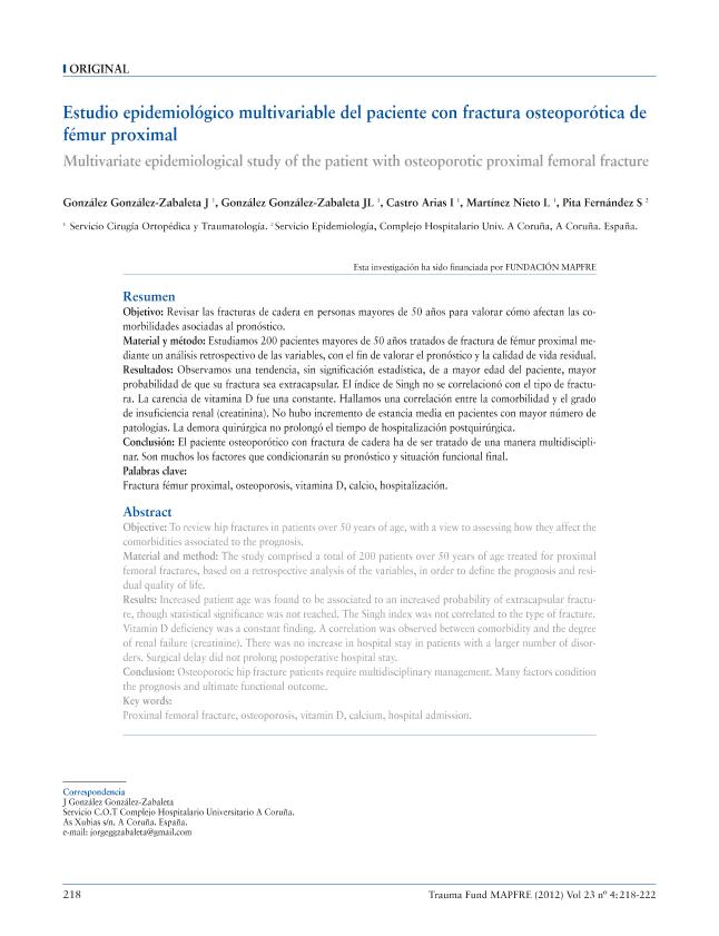 Estudio epidemiológico multivariable del paciente con fractura osteoporótica de fémur proximal