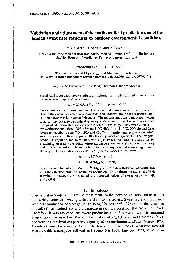 Validation and adjustment of the mathematical prediction model for human sweat rate responses to...