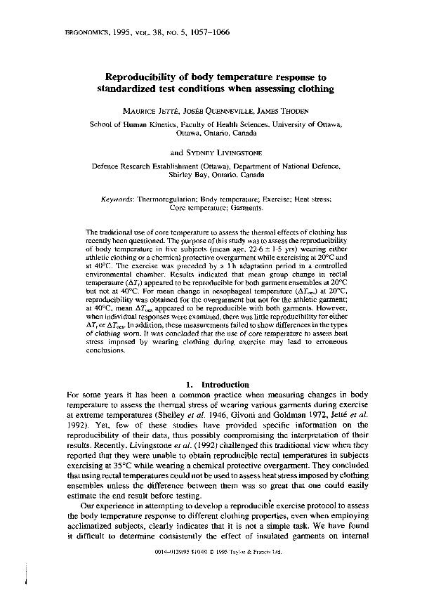 Reproducibility of body temperature response to standardized test conditions when assessing clothing