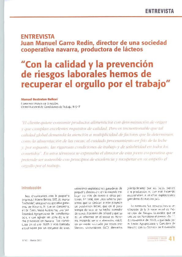 "Con la calidad y la prevención de riesgos laborales hemos de recuperar el orgullo por el...