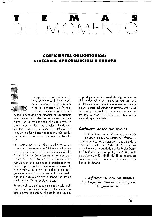Coeficientes obligatorios : necesaria aproximación a Europa