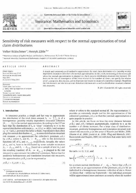 En: Insurance : mathematics and economics. - Oxford : Elsevier, 1990- = ISSN 0167-6687. - 01/11/2011 Tomo 49 Número 3 - 2011 , p. 335-344