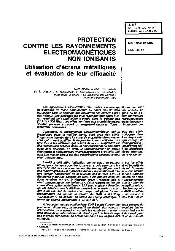 Protection contre les rayonnements électromagnétiques non ionisants : utilisation d'écrans...