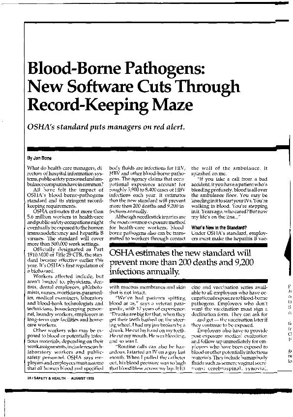 Blood-borne pathogens : new software cuts through record-keeping maze