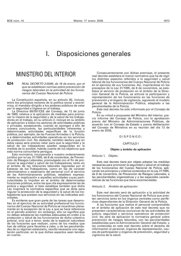Real Decreto 2/2006, de 16 de enero, por el que se establecen normas sobre prevención de riesgos...