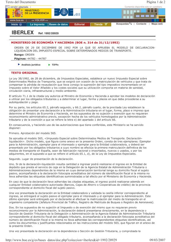 Orden de 29 de diciembre de 1992 por la que se aprueba el modelo de declaración-liquidación del...