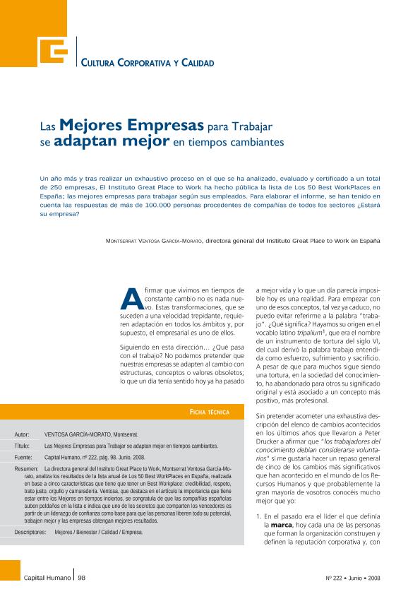 - En: Capital humano : revista para la integración y desarrollo de los recursos humanos. - Madrid : Wolters Kluwer, 1992-2015 = ISSN 1130-8117. - Número 220 - abril 2008