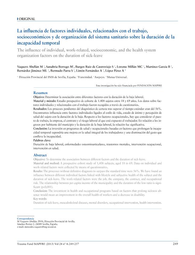 - En: Trauma : (fusión de la revista MAPFRE Medicina y la revista Patología del Aparato Locomotor). - Madrid : FUNDACION MAPFRE, Instituto de Prevención, Salud y Medio Ambiente, 2008-2015 = ISSN 1888-6116. - 01/10/2013 Volumen 24 Número 4 - Octubre 2013 , p. 249-257