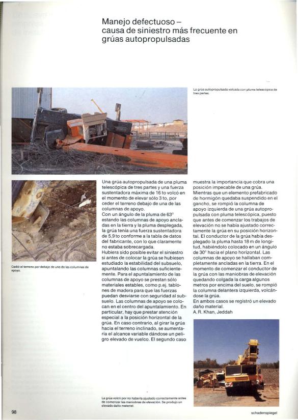 Manejo defectuoso : causa de siniestro más frecuente en grúas autopropulsadas