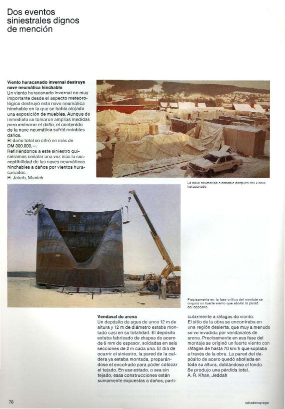 En: Schaden Spiegel : boletín de siniestros. - Munich : Münchener Rück, Munich Re Group, 1977-2011 = ISSN 0941-6595. - 01/06/1983 Tomo 1 Número 1 - 1983, p. 76