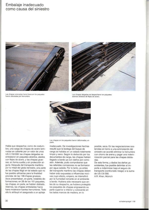 En: Schaden Spiegel : boletín de siniestros. - Munich : Münchener Rück, Munich Re Group, 1977-2011 = ISSN 0941-6595. - 01/06/1990 Tomo 1 Número 1 - 1990, p. 30