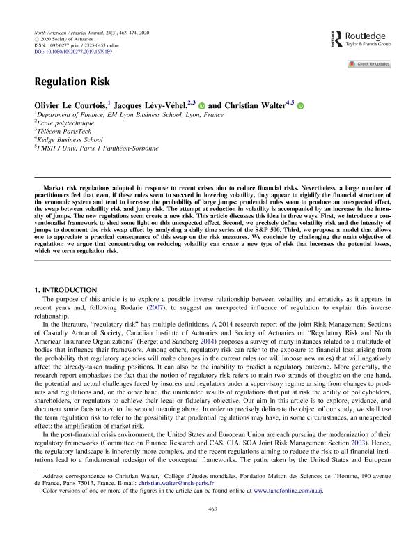 - En: North American actuarial journal. - Schaumburg : Society of Actuaries, 1997- = ISSN 1092-0277. - 01/04/2010 Tomo 14 Número 1 - 2010