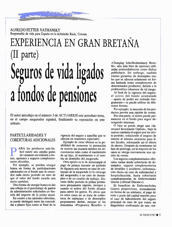 Seguros de vida ligados a fondos de pensiones: experiencia en Gran Bretaña (II parte)