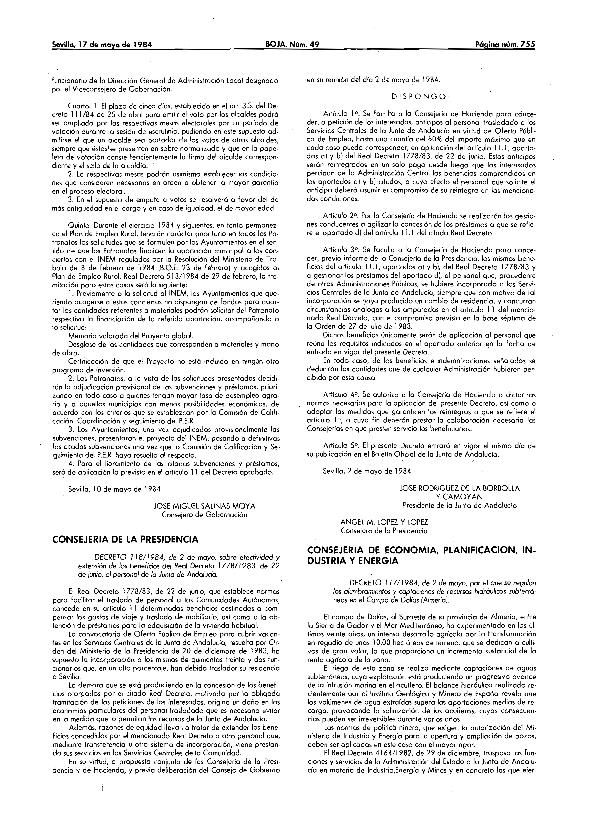 - En: . - B.O.J.A. núm. 40, de 17 mayo 1984