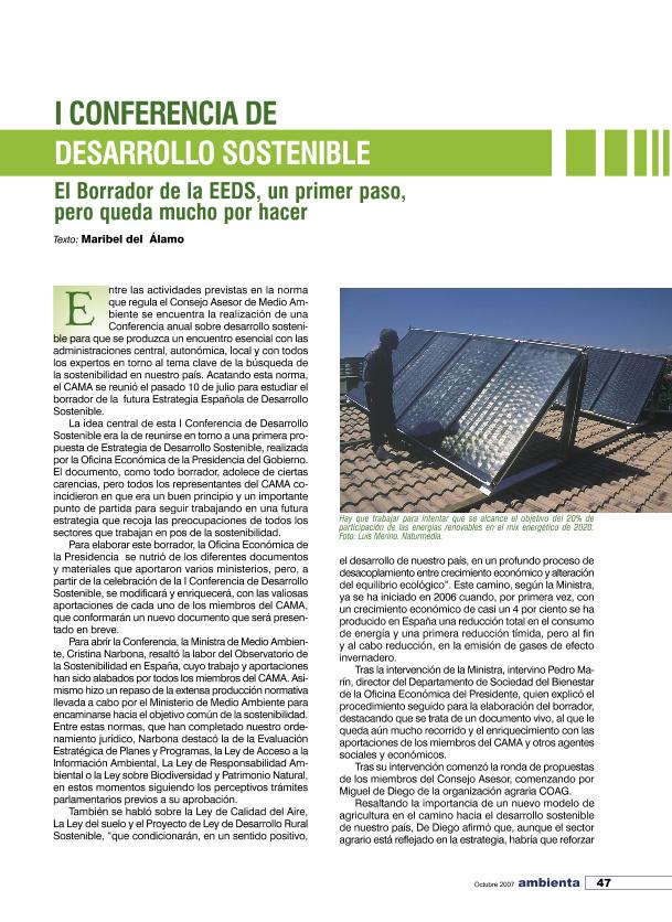 En: Ambienta. - Madrid : Ministerio de Medio Ambiente y Medio Rural y Marino, 2002- = ISSN 1577-9491. - 09/01/2007 Número 70 - Mes Octubre