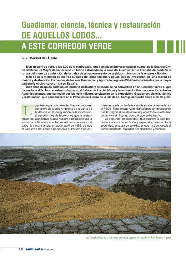 En: Ambienta. - Madrid : Ministerio de Medio Ambiente y Medio Rural y Marino, 2002- = ISSN 1577-9491. - 03/01/2008 Número 75 - Mes Marzo
