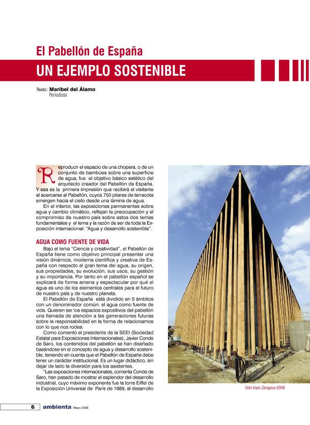 En: Ambienta. - Madrid : Ministerio de Medio Ambiente y Medio Rural y Marino, 2002- = ISSN 1577-9491. - 05/01/2008 Número 77 - Mes Mayo