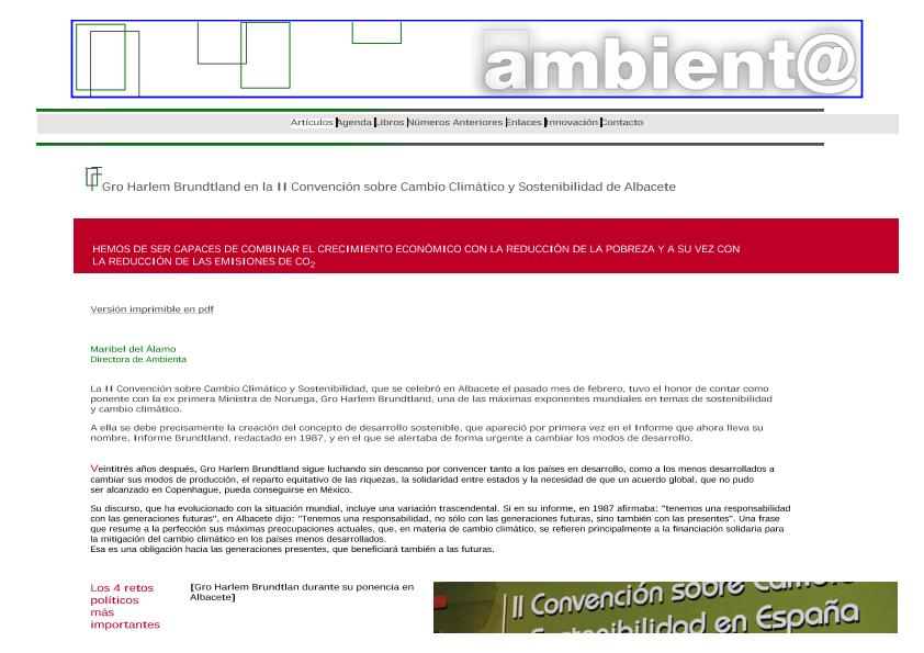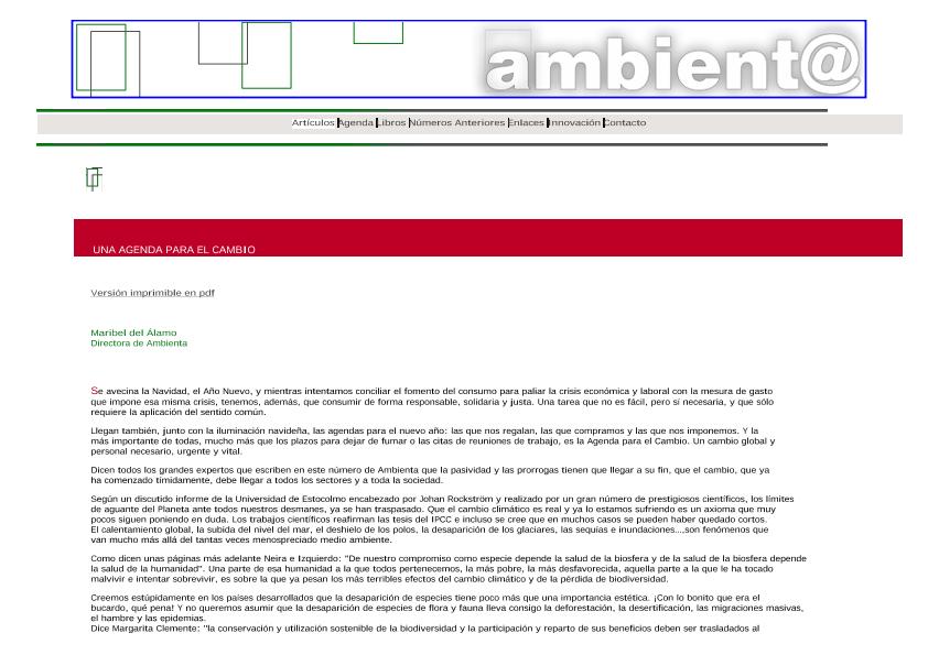 En: Ambienta. - Madrid : Ministerio de Medio Ambiente y Medio Rural y Marino, 2002- = ISSN 1577-9491. - 11/01/2006 Número 61 - Mes Diciembre