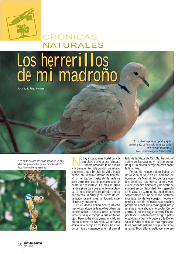 En: Ambienta. - Madrid : Ministerio de Medio Ambiente y Medio Rural y Marino, 2002- = ISSN 1577-9491. - 06/01/2003 Número 23 - Mes Junio