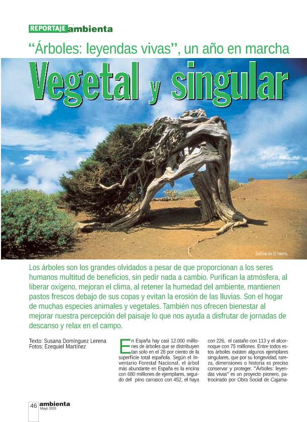En: Ambienta. - Madrid : Ministerio de Medio Ambiente y Medio Rural y Marino, 2002- = ISSN 1577-9491. - 05/01/2003 Número 22 - Mes Mayo