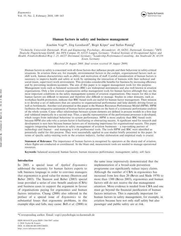 - En: Ergonomics : the international journal of research and practice in human factors and ergonomics. - Oxon [United Kingdom] : Taylor & Francis, 2010- = ISSN 0014-0139. - 01/02/2010 Volumen 53 Número 2 - febrero 2010 , p. 149-163