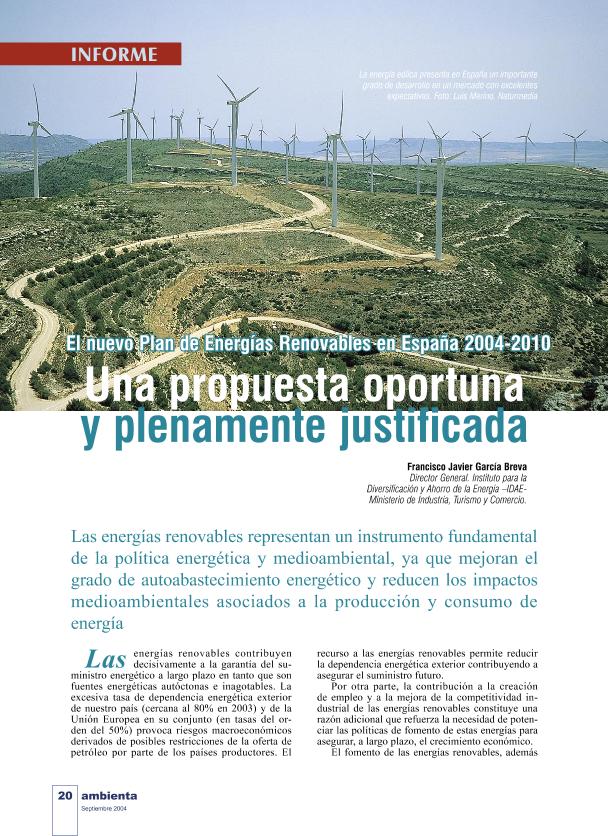 Una Propuesta oportuna y plenamente justificada: el nuevo Plan de Energías Renovables en España...