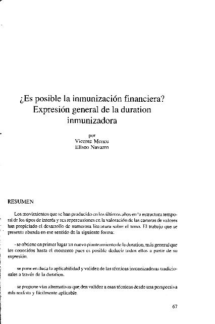 ¿Es posible la inmunización financiera? : expresión general de la duration inmunizadora