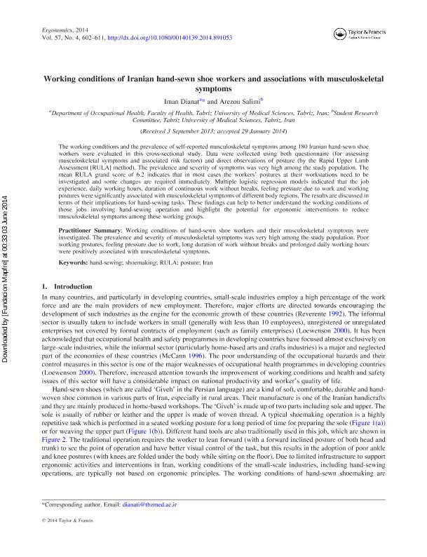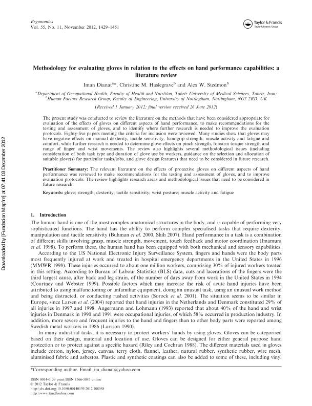 • En: Ergonomics : the international journal of research and practice in human factors and ergonomics. - Oxon [United Kingdom] : Taylor & Francis, 2010- = ISSN 0014-0139. - 07/04/2014 Volumen 57 Número 4 - abril 2014