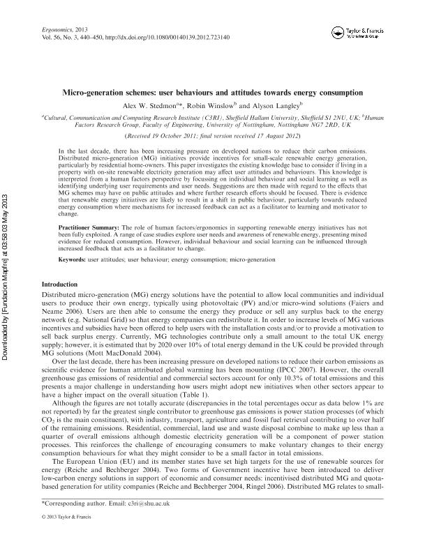 Micro-generation schemes : user behaviours and attitudes towards energy consumption