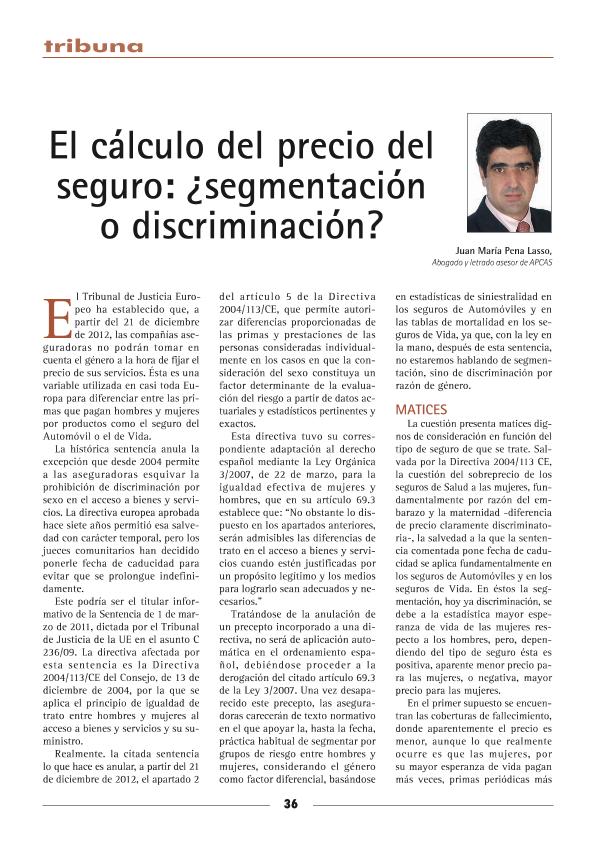 El Cálculo del precio del seguro : ¿segmentación o discriminación?