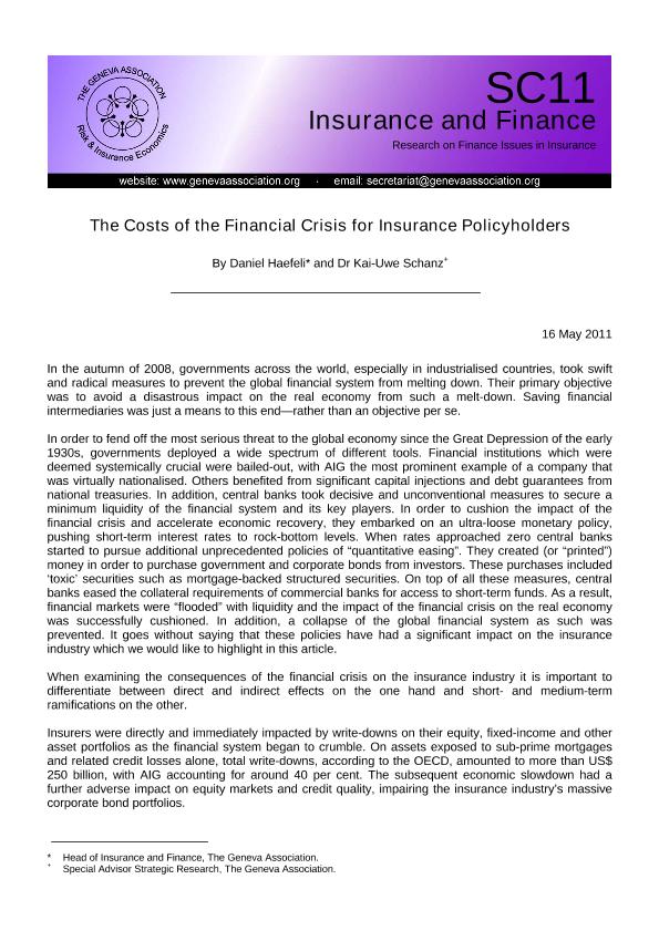 The Genova Asociation : the cost of the financial crisis for insurance policyholders