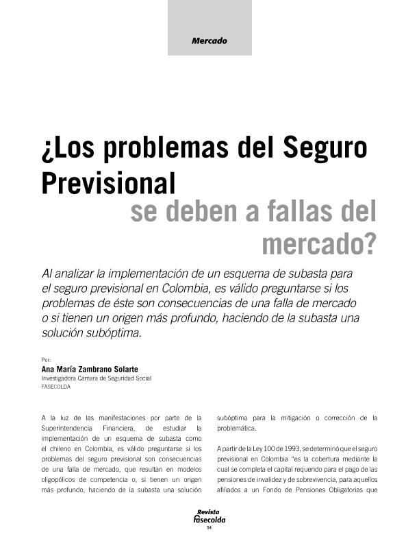 - En: Revista Fasecolda. - Bogotá : Unión de Aseguradoras Colombianos, 1979- = ISSN 0120-1972. - 07/01/2013 Número 150 - 2013 , p. 54-57