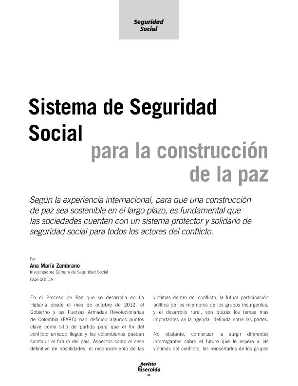 Sistema de Seguridad Social para la construcción de la paz